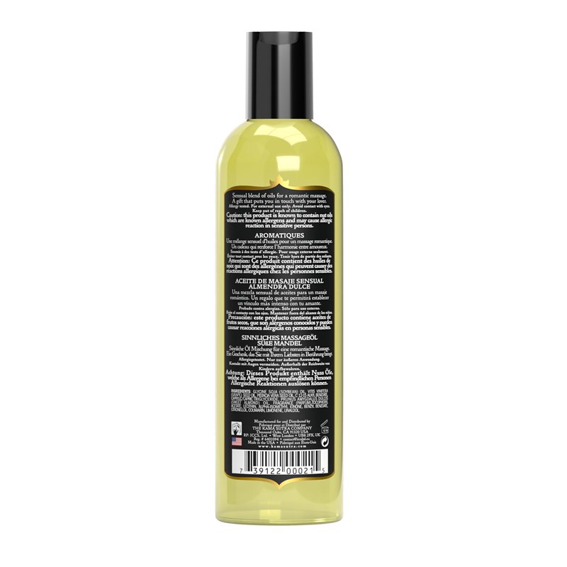 KAMA SUTRA Aromatics Massage Oil Sweet Almond – 8oz - Rich Blend of Oils - Sore Joint & Muscle Massage Oil for Body - Natural Therapy Oil - Warming, Sensual Massage for Couples, Women, and Men