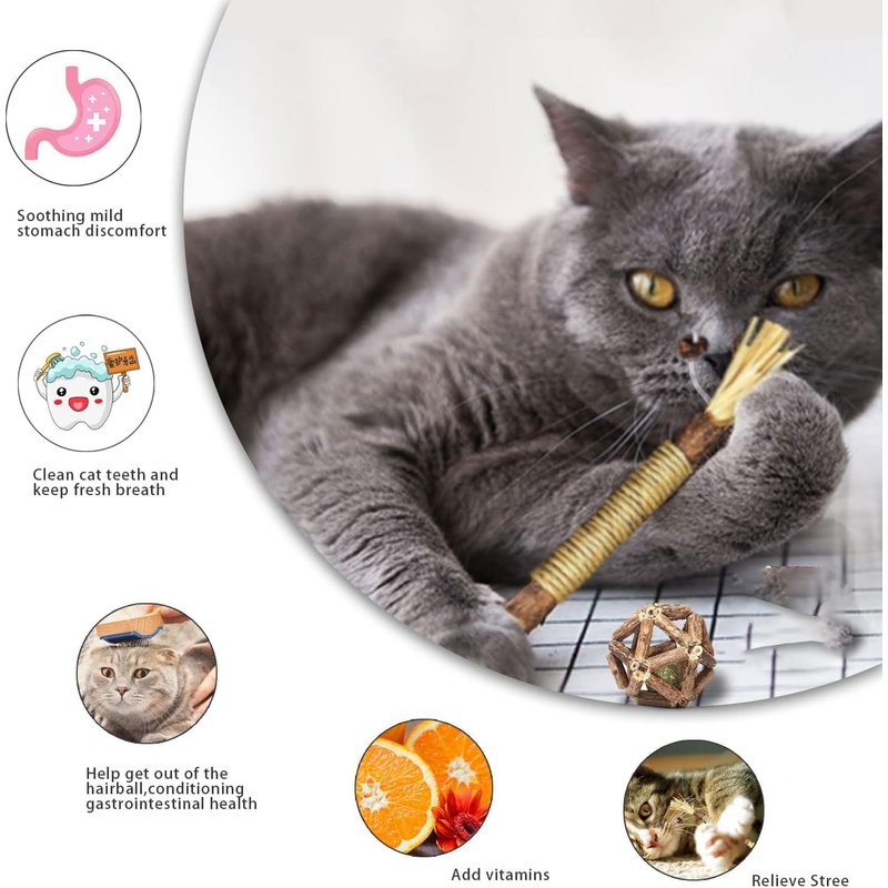 - 4.【Cat Toys for Bored Indoor Adult Cats】:Enhance your cat's interest with a combo of Silver Vine Stick, Catnip Ball. Keep your feline active, happy, and curb destructive behavior. Say goodbye to lazy days and furniture damage!