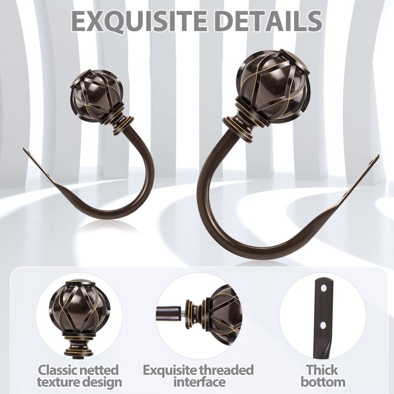 Classic yet stylish netted texture finials with hand gilt pattern and oil-rubbed hooks will enhance the design of your windows.