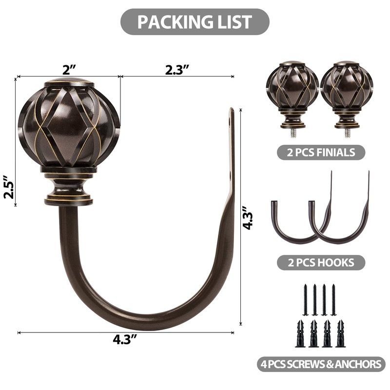 - Material & Dimensions- Finials made of high-quality polyresin. Multiple colors available: black, silver, bronze, champagne gold, etc | 4.3" (length) x 4.3"(width) x 2" (height).