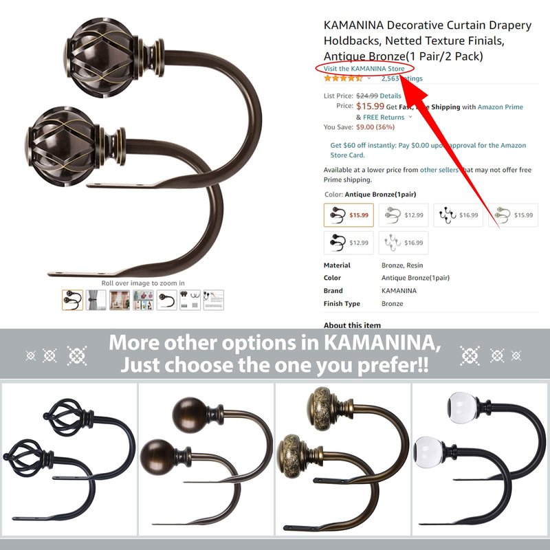 KAMANINA Decorative Bronze Curtain Drapery Holdbacks