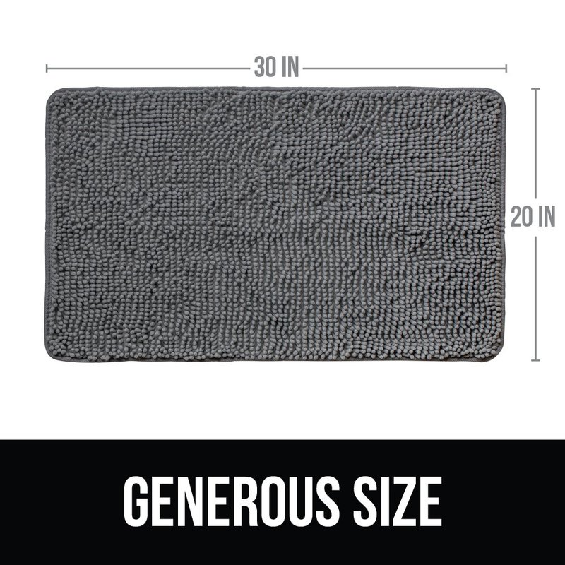 KANGAROO Luxury Chenille Bath Rug, 30x20, Extra Soft and Absorbent Shaggy Kids Bathroom Rugs, Machine Wash Mat, Strong Underside, Plush Carpet Mats for Tub, Shower, Bathtub and Bath Room, Gray