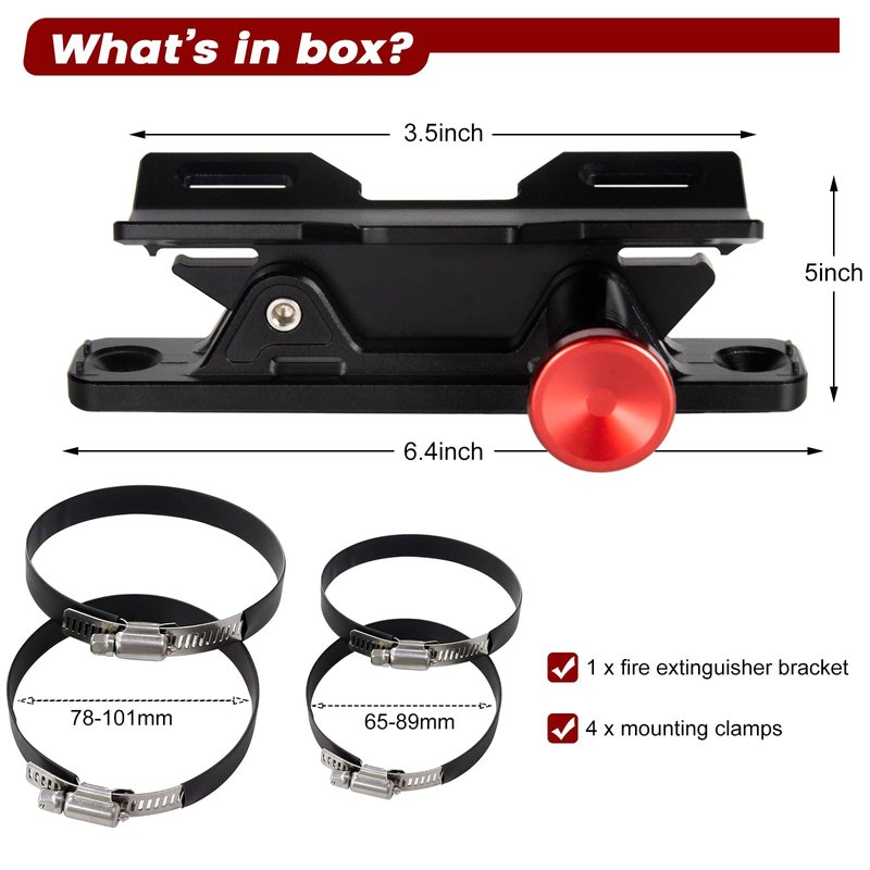 Package Included: 1 x fire extinguisher mount, 4 x adjustable ring