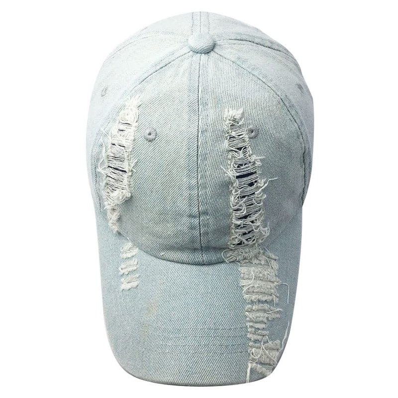 Kangqifen Unisex Ripped Distressed Denim Baseball Cap Trucker Hat Adjustable Blue