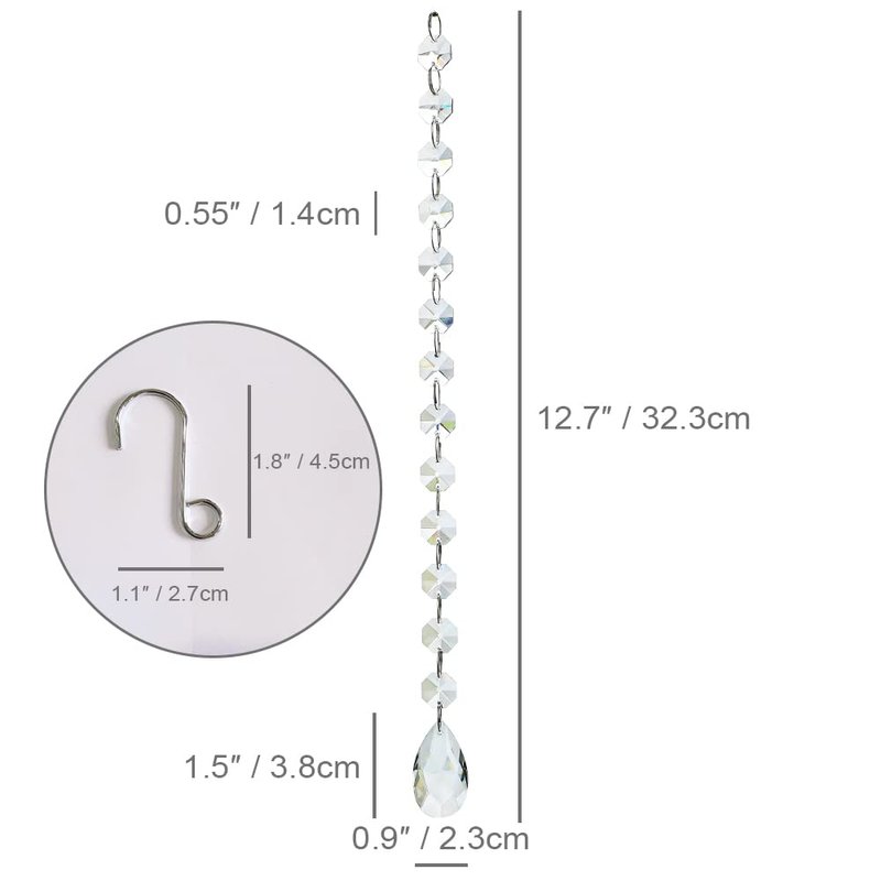 - 🌈Inclusion - 10 Pack 12.7" Chandelier Crystals,Each crystal teardrop glass main chandelier prisms measures 38mm / 1.5" and includes 13pcs 14mm / 0.55" top jewel octagon beads, and has a total hang of 12.7"/323mm, connected with stainless jump rings to there is a hook make hanging simple.