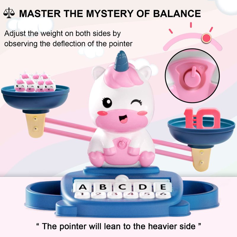Kaodezhu Unicorn Math Balance Toy for Boys and Girls - Montessori Matching Letter Toy for Kids 3 Year Olds, Educational Kindergarten Preschool Early Learning, Birthday Gift for 4 5 6 7 Years Old