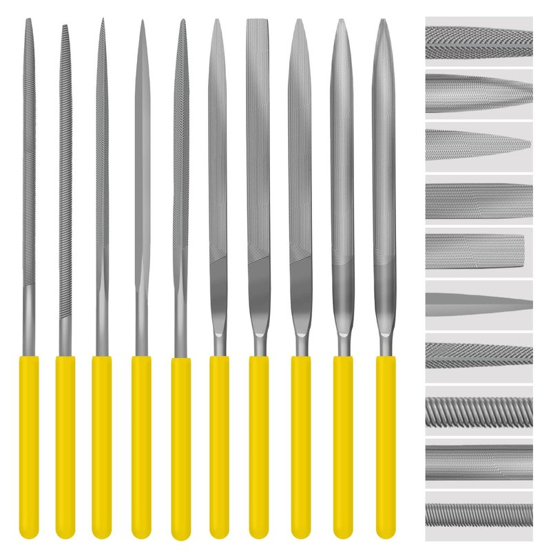 - 【Unique Design】- The needle files set includes crossing file, barrette file, flat file, half round file, hand file, knife file, oval file, round file, triangle file, square file. 10 different designs of the hand metal files increase the ranges of application
