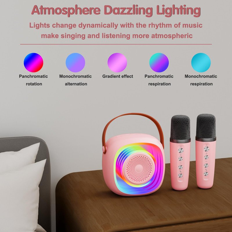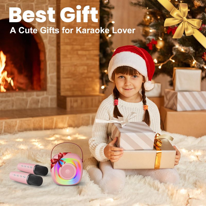 Karaoke Machine for Kids, Mini Portable Bluetooth Karaoke Speaker with 2 Wireless Microphones and Lights, Birthday Gifts for Girls Ages 4, 5, 6, 7, 8, 9, 10, 12+(Pinkcolor)