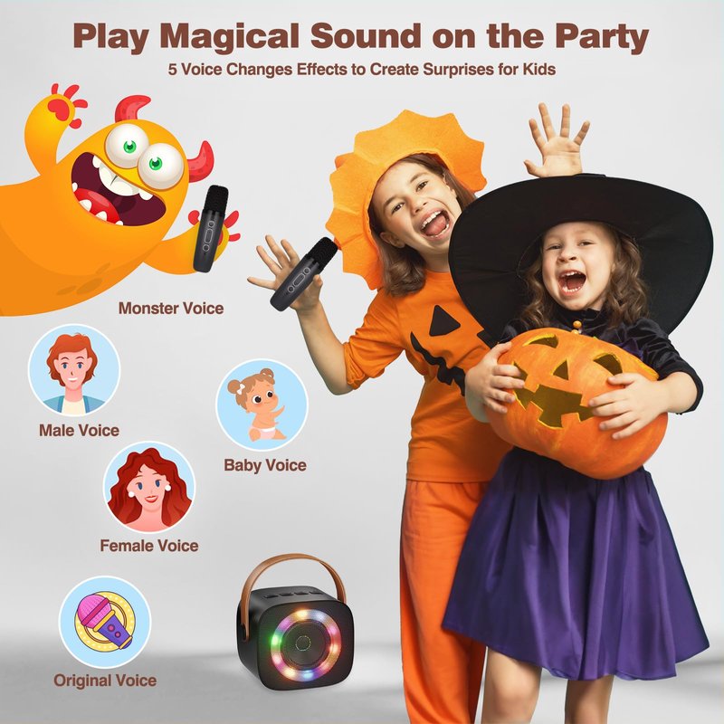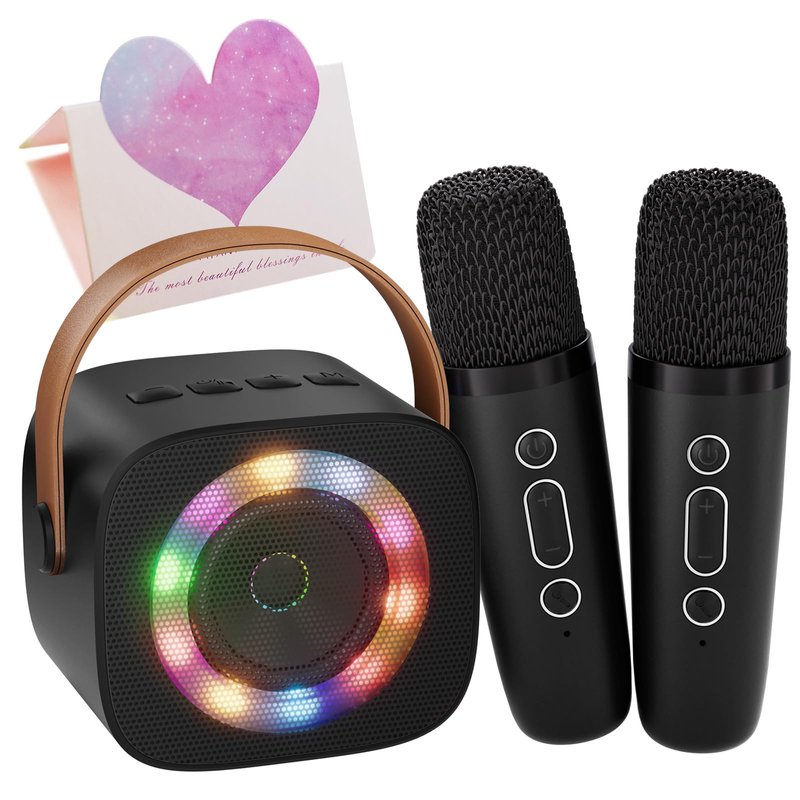 - Karaoke Machine for Kids, Portable Bluetooth Mini Karaoke Microphone Singing Speaker with 2 Wireless Mic, Long Battery Life and Stereo Sound, Christmas Birthday Gifts for Family Home