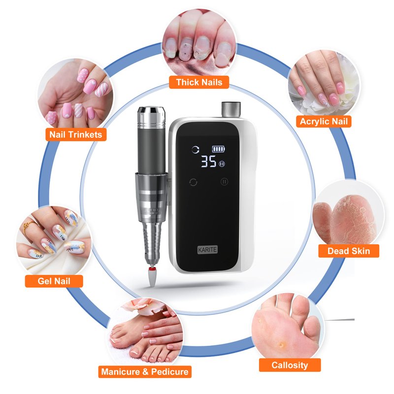 - 2022 UPGRADED 35000RPM CORELESS MOTOR – Your nail art creation will be even more enjoyable thanks to the KARITE electric nail filer's advanced coreless motor, which can reach speeds of up to 35000 rpm. This efile for acrylic nail art provides efficient nail filing and shaping with low consumption while producing low noise, ensuring smooth operation and better using experience.
