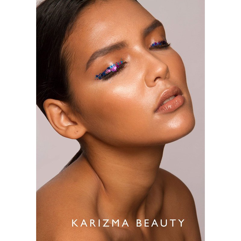 KARIZMA Holographic Chunky Festival Body Glitter and Glitter for Face. You’ve seen our fashion in music videos and on stage, but guess what? You’ve seen our chunky body glitter, and now you get to wear it too! But this isn’t just any old shaped glitter, it’s your secret formula to a superstar glow. Available in a range of colors including: gold glitter eyeshadow, rose gold pink face glitter, assorted glitter packs, mermaid body glitter, holographic face glitter, star glitter makeup and more! Use it as glitter for lip gloss, glitter for eyes, makeup glitter or eyeshadow glitter because it’s cosmetic grade safe plastic glitter (no glass or nasties). So whether you need mardi gras face glitter, something to match your Coachella outfits for women or men, or even alien glitter makeup, you now know where to find your vibe