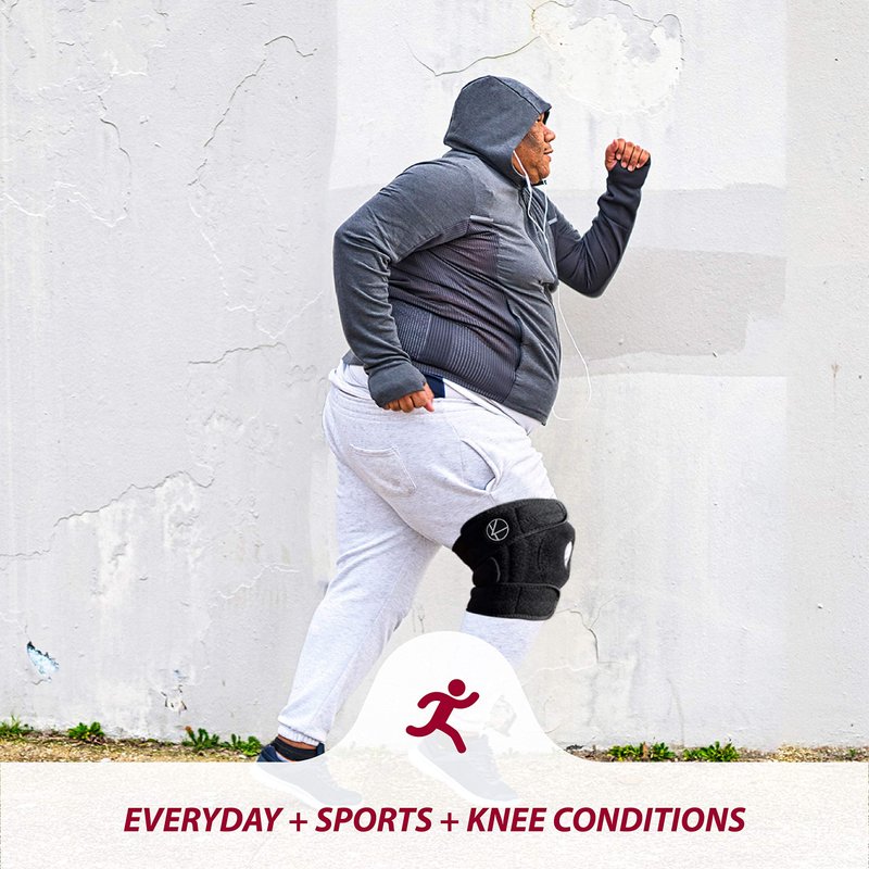 - Copper infused material used inside of the knee brace is soft and offers comfort. Open patella design helps to reduce pressure to the patella & underlying knee joint, making the knee brace plus size perfect for heavy usage. Extra support for working out: walking, running, weightlifting, bodybuilding, cross training, hiking, playing golf, bowling, biking.