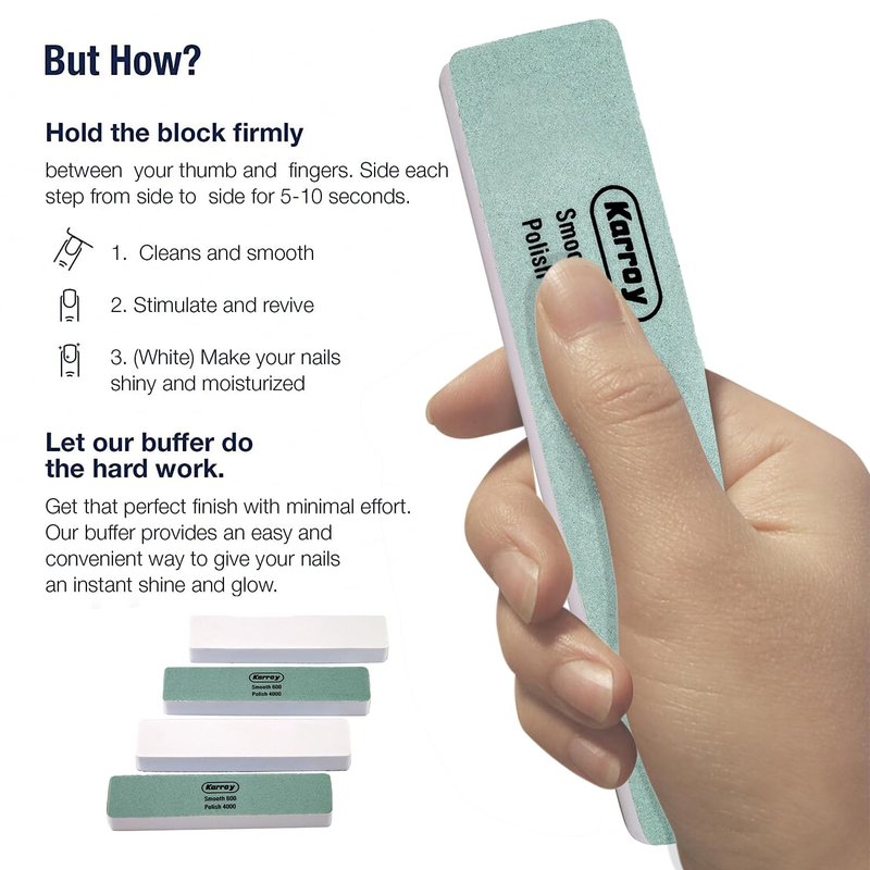 - 【Salon and Home】Karroy Nail Buffers Block is a must have in professionnal salons or DIY nail art at home. Besides, this nail buffer is a terrific gift for girls who love nail art as a birthday gift, Christmas gift, Halloween gift, etc.