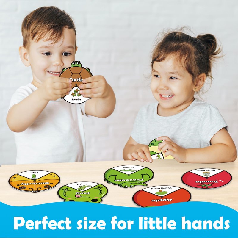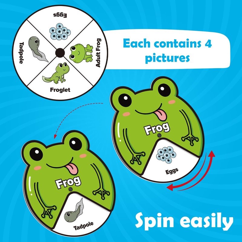 - 【Improve Skills】 Children learn about the different stages of the life cycle by rotating cards, such as tadpole to frog, caterpillar to butterfly, etc. It can cultivate children's hands-on ability, develop hand-eye coordination, fine motor skills, cognition and imagination.