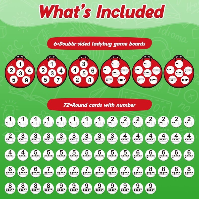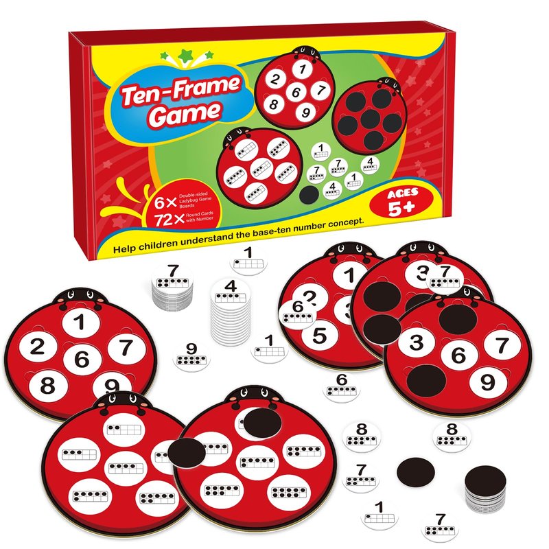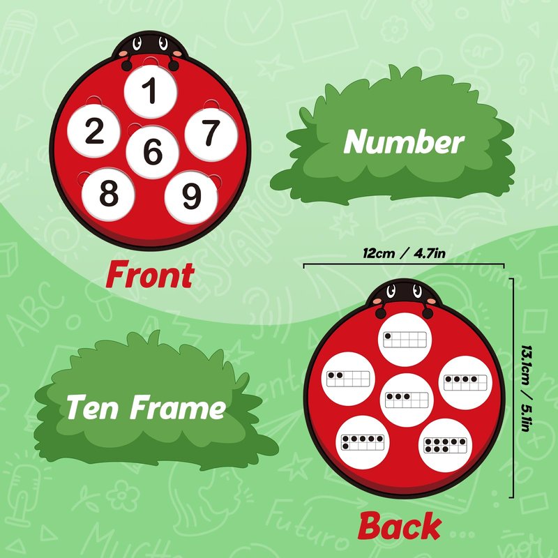 - 【What’s Included】 Ten frame set features 6 double-sided ladybug game boards and 72 round cards with numbers. The appearance of the game board is a cute ladybug, which can attract children's attention and allow them to actively participate.