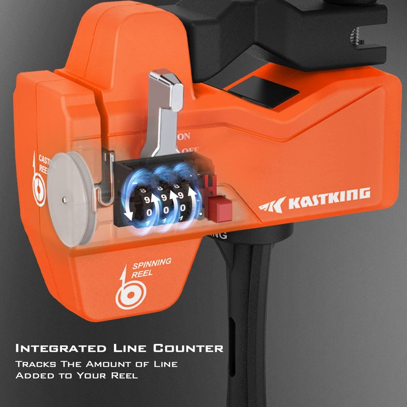 KastKing Fishing Line Spooler & 5’’ Braid Scissors - W/Line Counter, Patented Accessories, Portable, Fishing Gears Gifts for Men, Compact, for Spinning & Casting Reels - No Line Twist, Orange
