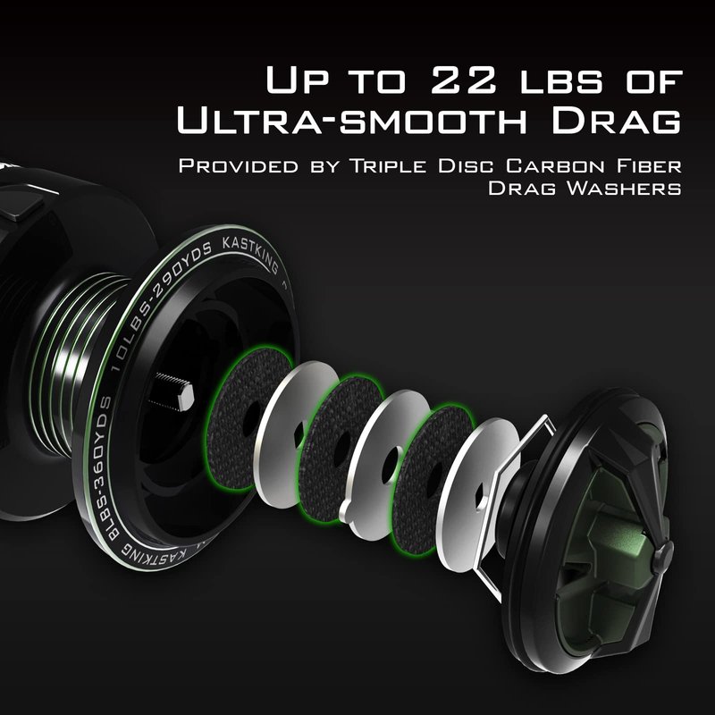 - SMOOTH OPERATION - You will love Spartacus II spinning reel's ultra-smooth, reliable 22 lbs of triple disc carbon fiber drag that allows you to use light fishing lines, oversized stainless-steel main shaft, and strong metal gears for more durability.