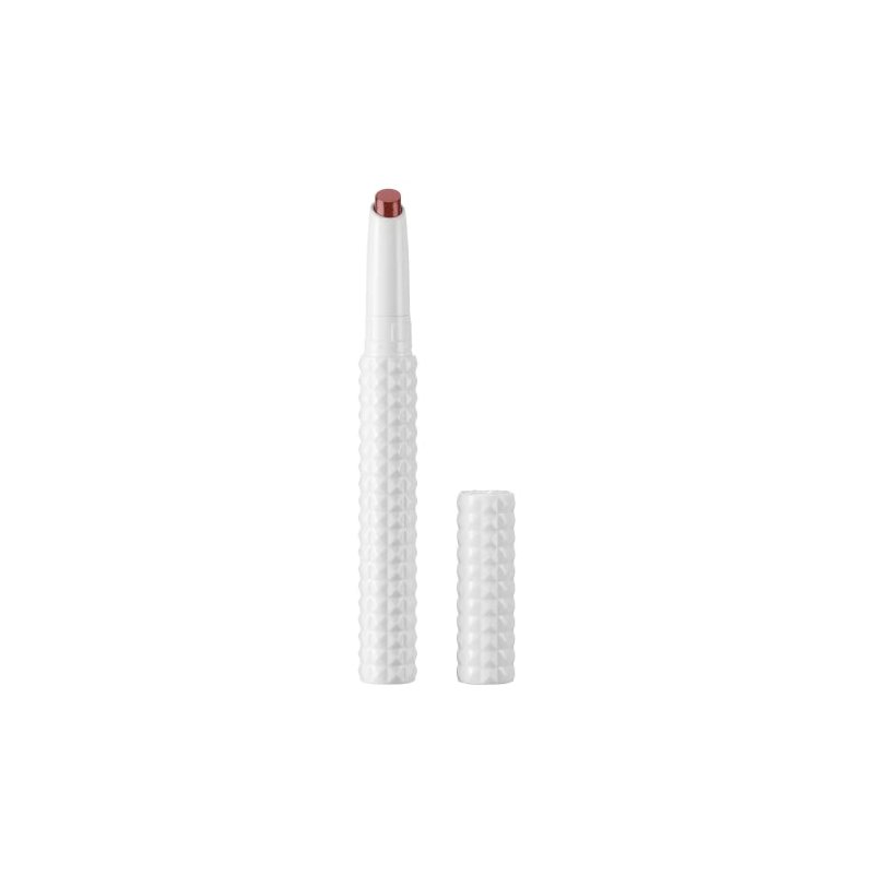 Packed with pigment for instant, one-swipe color, Epic Kiss has a comfortable, shiny finish for a smooth, full look. Nourishing vegan cupuaçu butter helps give it that ultra-buttery, balm-like feel. The sleek, studded case is made from 80% post-consumer recycled materials.