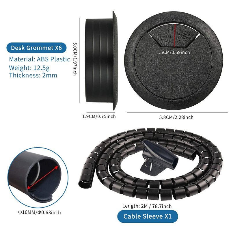 - Keep Clean and Tidy: The desk grommets and cable sleeve can effectively manage cables and wires, keep the desktop clean and tidy