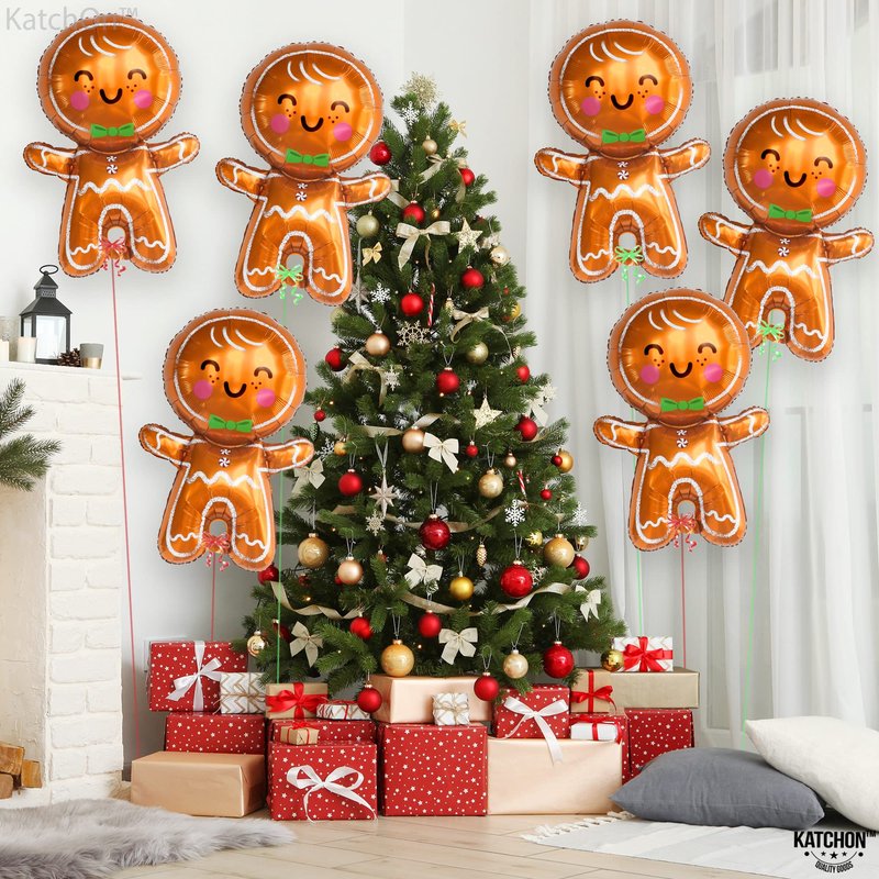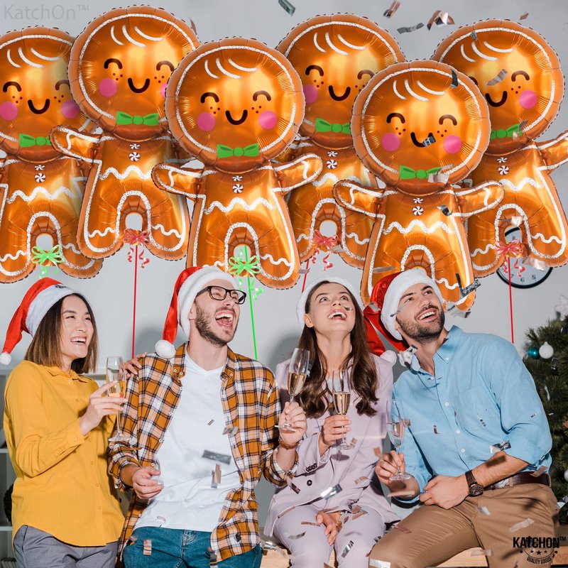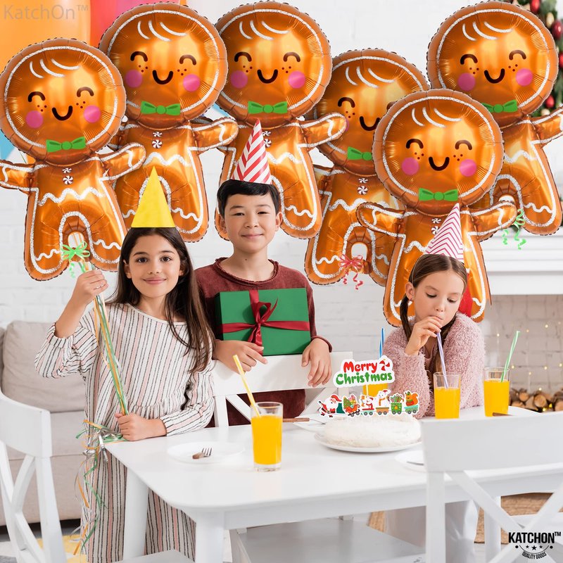 KatchOn, Big Merry Christmas Gingerbread Balloons - Pack of 6 | Gingerbread Man Balloon for Christmas Party Decorations | Christmas Foil Balloons for Christmas Decorations | Gingerbread Decorations