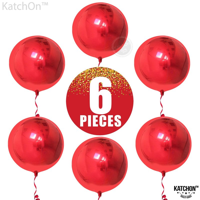 KatchOn, Big Metallic Red Balloons - 22 Inch, Pack of 6 | 360 Degree 4D Sphere Red Metallic Balloons for Red Party Decorations | Red Chrome Balloons, Red Foil Balloons for Red Birthday Decorations