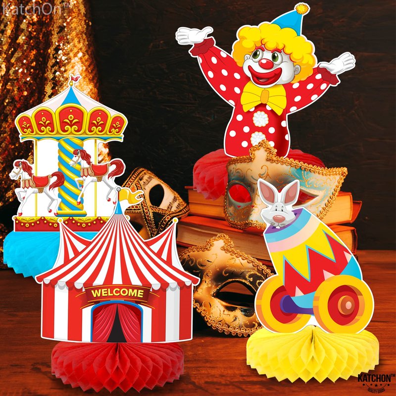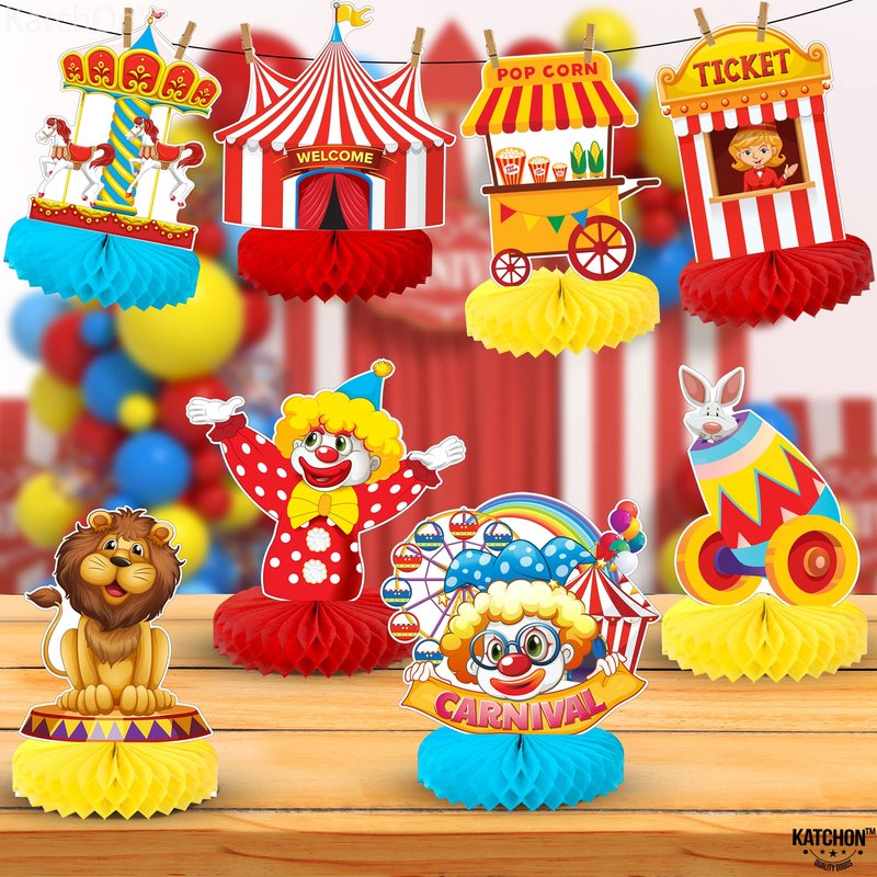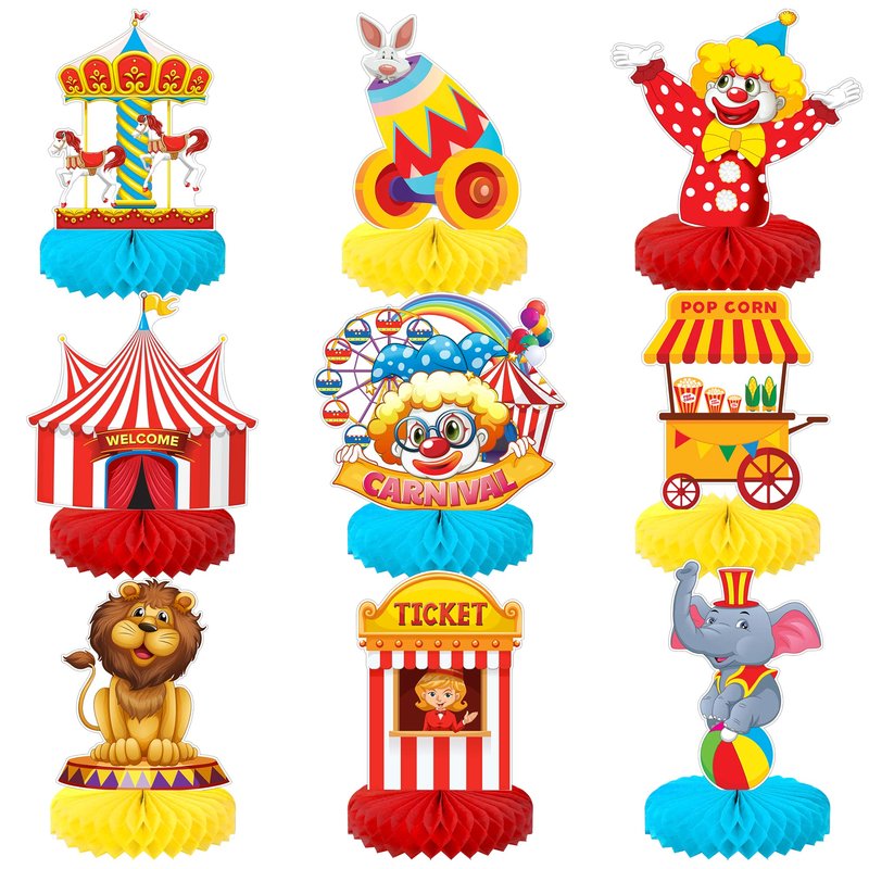 - GET READY TO CLOWN AROUND WITH OUR CARNIVAL HONEYCOMB: Create perfect shots for post with this Carnival themed centerpieces. Perfect for carnival birthday decorations, carnival baby shower decorations, circus theme party decorations, carnival centerpiece table decorations, circus party centerpieces, etc. These Ferris wheel centerpiece table decorations will help your guests remember your event for years to come. These circus birthday party decorations will make a memorable party decorations.