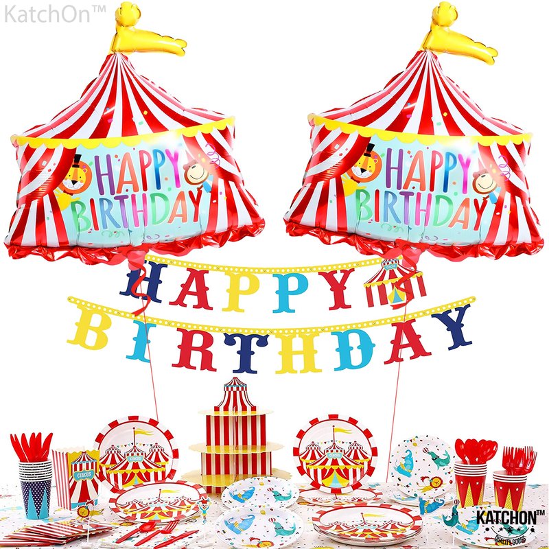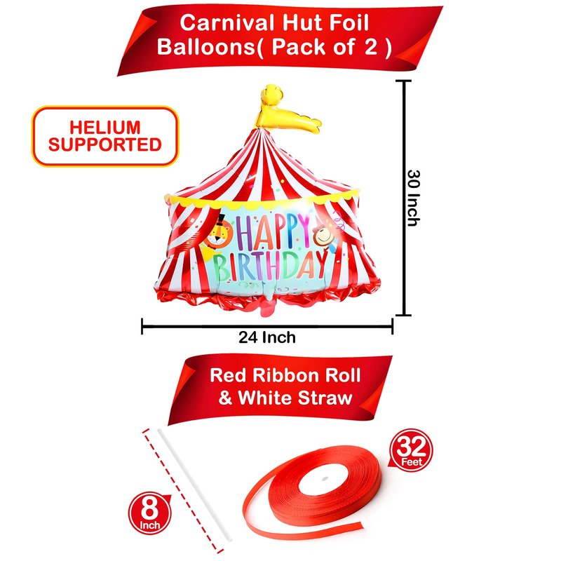 - LARGE SIZE - 30 INCH | HUGE CIRCUS TENT FOIL BALLOONS : Carnival is an explosion of colors and happiness. This circus helium balloons, carnival birthday party supplies bring all the happiness. This adorable happy birthday carnival circus balloons and happy bithday circus tent balloons for baby's birthday are larger size of 30 inch and can be highlight point in your carnival balloon banner for Carnival Theme Party Decorations or carnival theme birthday party decorations.