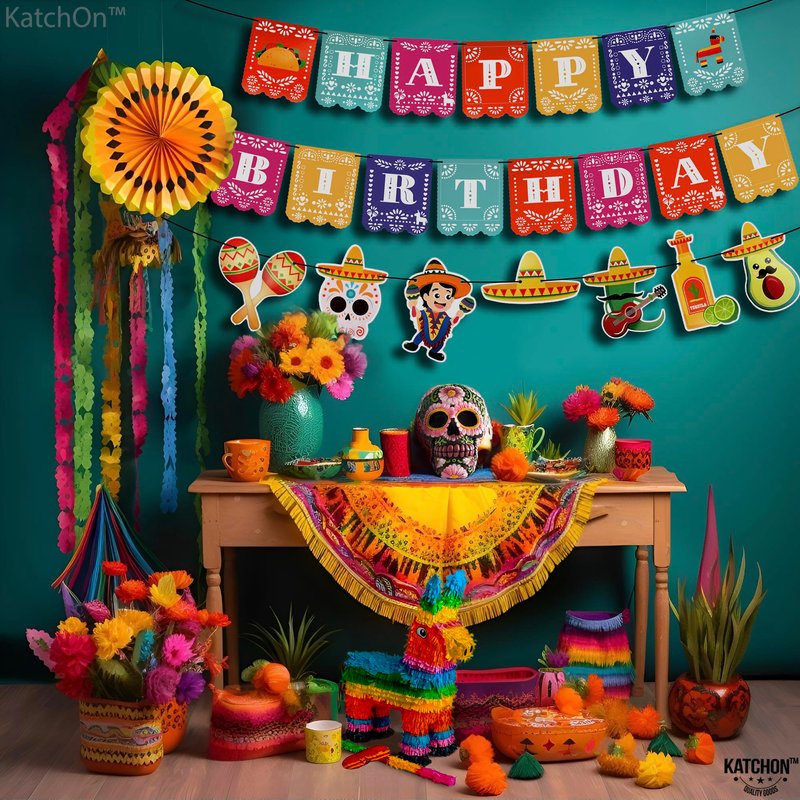 - MULTIPURPOSE USES: The happy birthday banner mexican theme is also good for happy birthday mexican decorations or any theme party. Great idea to use these happy birthday mexican banner for first fiesta birthday decorations, 40th birthday fiesta decorations, 60th birthday fiesta decorations and more. Mexican Carnival theme birthday party supply mainly go with happy birthday mexican decorations. Everyone will love to take pictures with fiesta birthday party decorations.