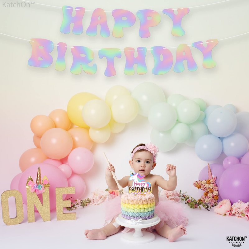 - Sparkling holographic foil printed letters create a magical aesthetic for any birthday party