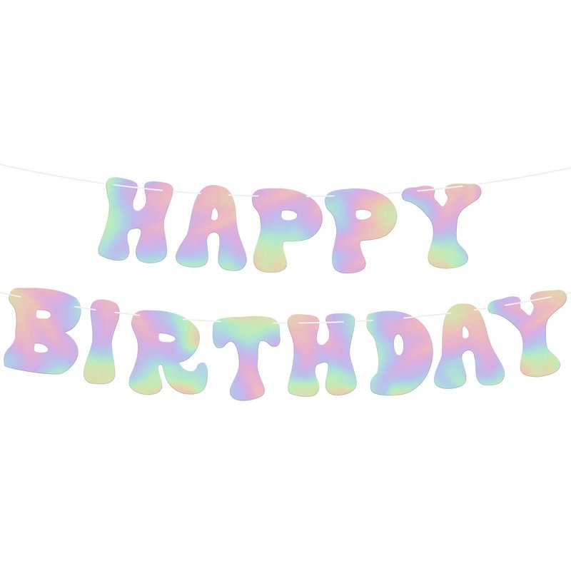 Iridescent Happy Birthday Banner - 10 Feet, No DIY