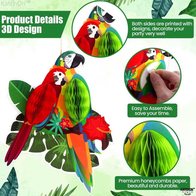 - WIDE APPLICATION | CREATE A TROPICAL PARADISE : These tropical birds decorations cutouts are wonderful for hawaiian themed party decorations, summer luaus rainforest decorations, tiki party decorations, tropical bird party decorations. Using them as decorations in your party will add more colorful and tropical element ; And our parrot honeycombs as bird decorations for party like jungle party decorations, hawaiian decorations for party, island themed party decorations.