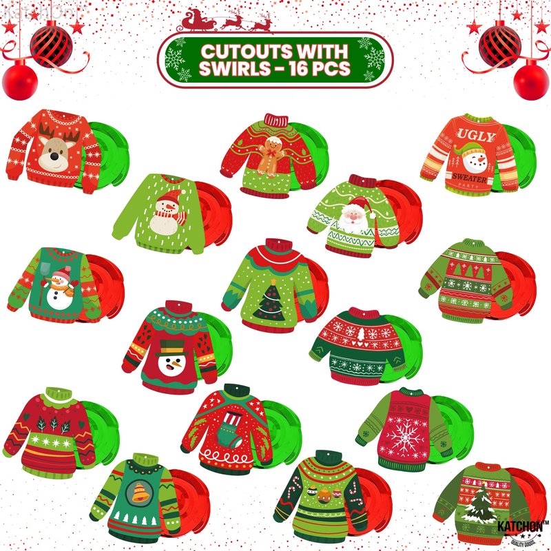 KatchOn, Ugly Sweater Christmas Hanging Decorations - Pack of 30, No DIY | Ugly Sweater Party Decorations | Hanging Christmas Decorations for Christmas Party Decorations | Merry Christmas Decorations