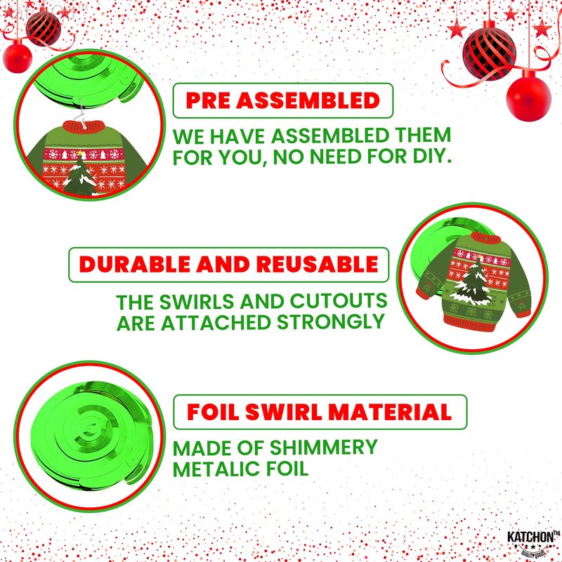 - ELEVATE YOUR EXPERIENCE : We assure the quality of this Christmas Hanging Decorations. If you are not happy with its quality, We are always happy to help you regarding this Christmas Hanging Swirls. We care about your experience and good feedback so we personally made sure that you enjoy decorating your Christmas Party with this ugly sweater hanging decorations for Christmas Party Decorations.