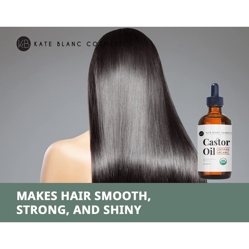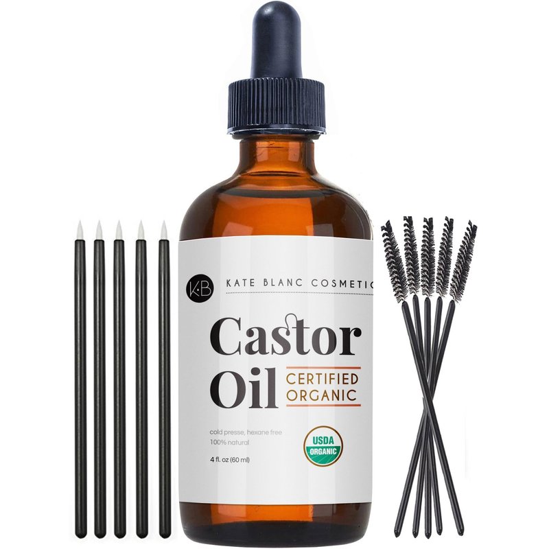 USDA Certified Organic Castor Oil for eyelashes and eyebrows growth. If you’re looking for a natural and organic oil to grow your eyelashes and eyebrows, Kate Blanc Cosmetics organic castor oil is a Godsent. Kate Blanc Cosmetics Castor Oil is organically grown and cold pressed with no added preservatives. Because it’s 100% pure, it easily absorbs into your lashes and brows to boost hair growth.