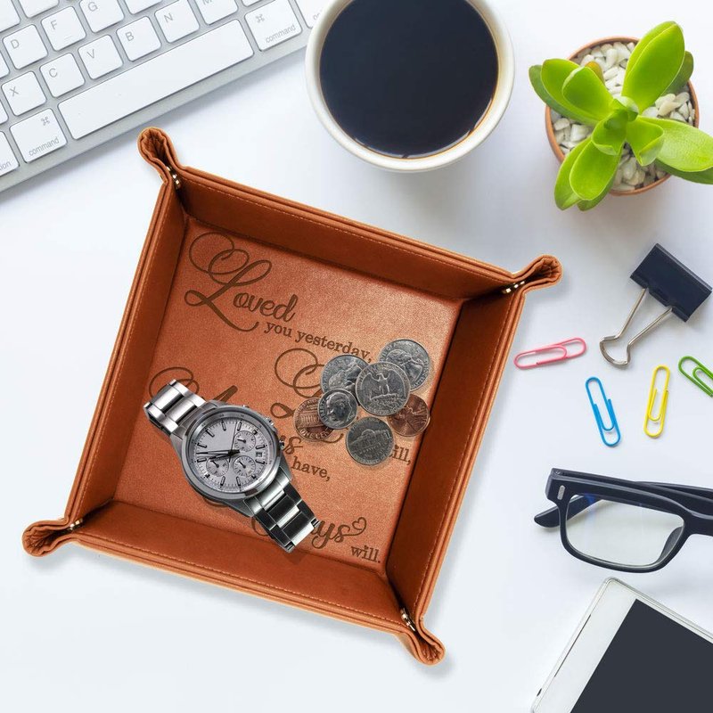 KATE POSH - Loved You Yesterday, Love You Still, Always Have, Always Will Engraved Leather Catchall Valet Tray, Our 3rd Wedding Anniversary, 3 Years as Husband & Wife, Gifts for her, him (Rawhide)