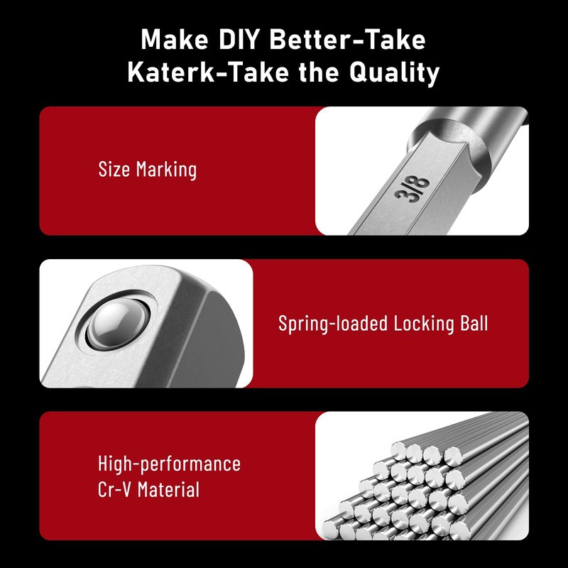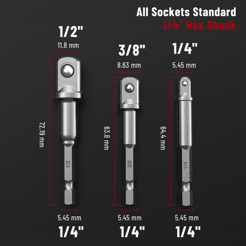 - 【Secure Grip】The spring-loaded ball bearing can firmly fix the socket to prevent it from slipping out of the adapter, ensuring high efficiency and safety. Socket adapter, a good tool supplement for any toolbox group