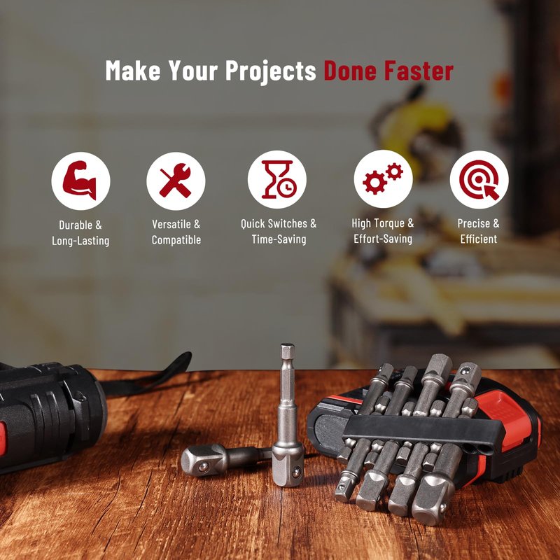 - 【Dual Size Conversion】With the ability to convert hexagonal sizes to square head sizes, this socket drill adapter is a versatile tool for socket installation. It enhances work efficiency and offers added convenience, making it an essential accessory