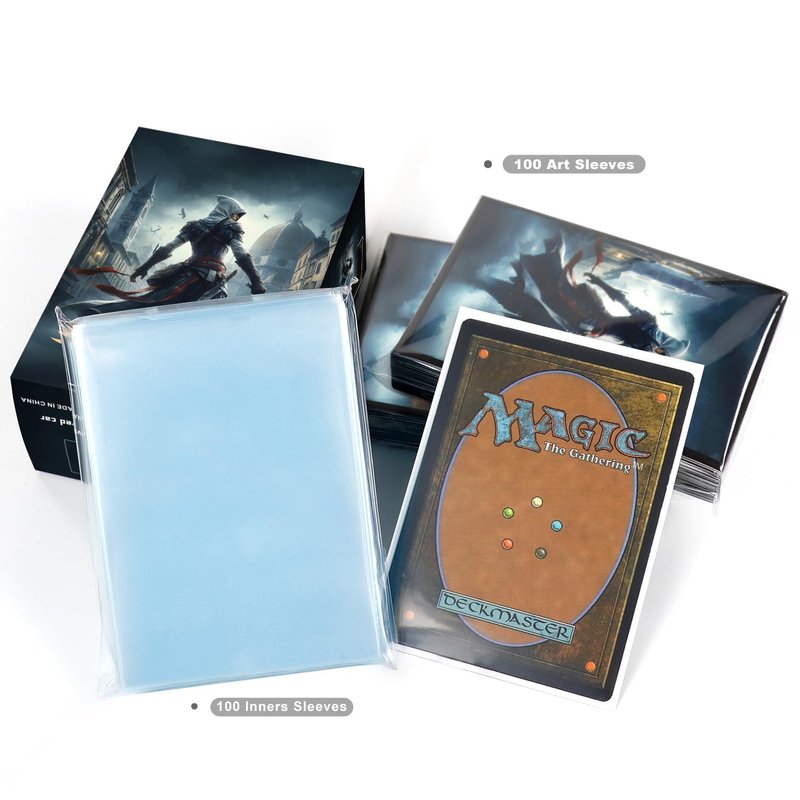 Katomula 100 PCS MTG Card Sleeves with 100 PCS Perfect Fit Sleeves, Art Matte Card Sleeves with Inner Sleeves - Fit Standard Size Cards - Assassin