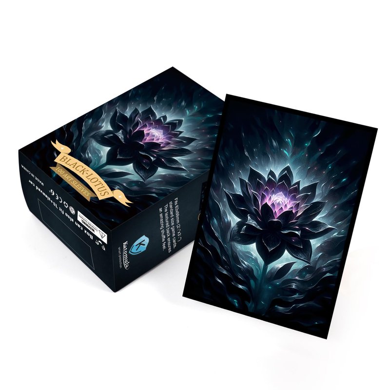 Katomula 100 PCS MTG Card Sleeves with 100 PCS Perfect Fit Sleeves, Art Matte Card Sleeves with Inner Sleeves - Fit Standard Size Cards - Black Lotu