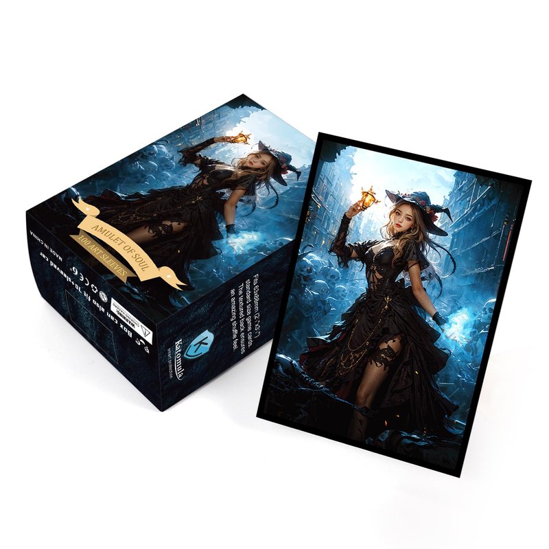 Katomula 100 PCS MTG Card Sleeves with 100 PCS Perfect Fit Sleeves, Art Matte Card Sleeves with Inner Sleeves - Fit Standard Size Cards - Necromancer and Amulet of Soul