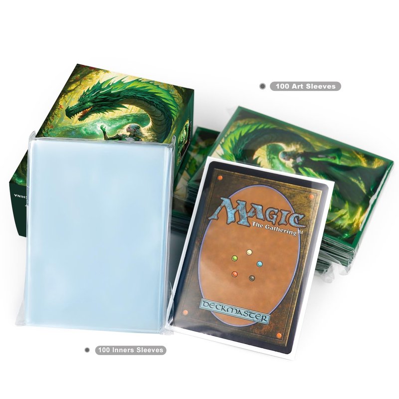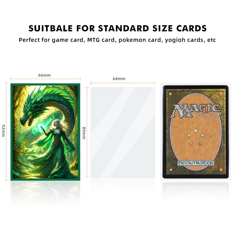 Katomula 100 PCS MTG Card Sleeves with 100 PCS Perfect Fit Sleeves, Art Matte Card Sleeves with Inner Sleeves - Fit Standard Size Cards - Spellbinder and Her Verdant Dragon