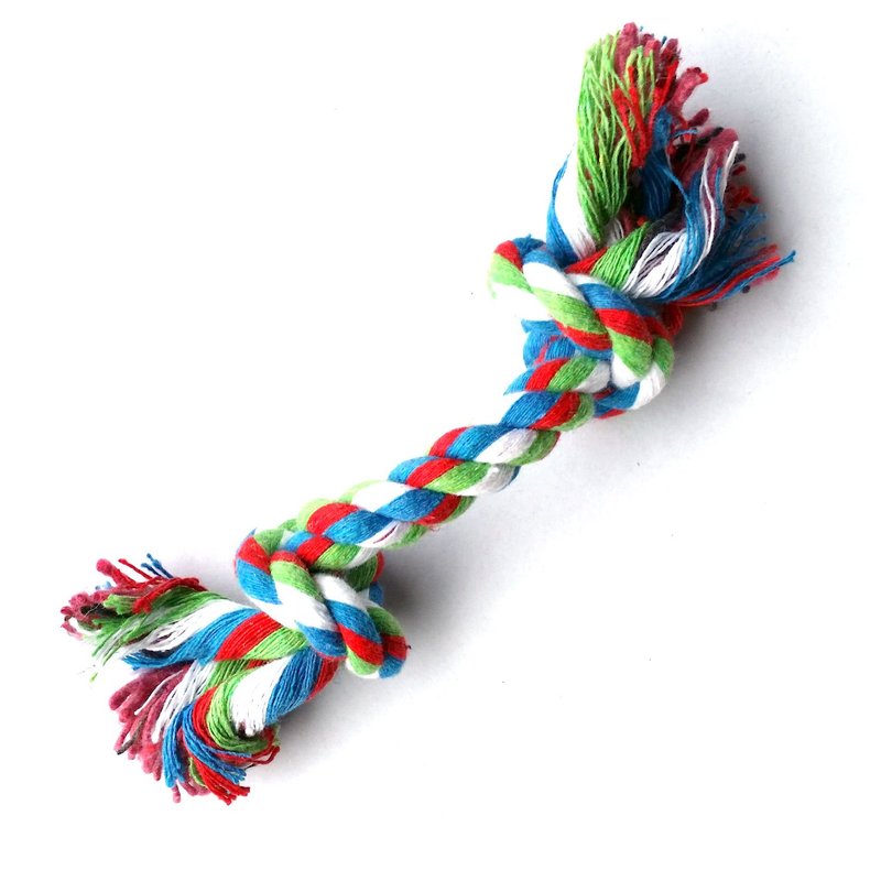 Perfect for small or medium dogs. These cotton rope bone Knot toys are very durable for hours of play. A perfect combination of simplicity and fun, Perfect tough chewing toy for your pets. This toy is detailed with bright, attractive colors that lend a captivating charm to the design. This rope is made from top quality, durable cotton and has a tight coiled design to ensure lasting use. High quality natural dyes used for coloring the ropes make this toy ideal for your pet to chew without worrying about toxic substances.