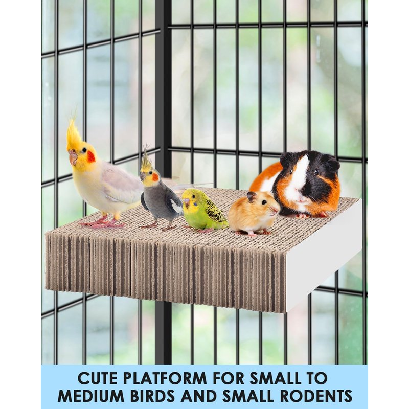 - VERSATILE PET STAND: This cardboard stand can be used as a chew toy, a stand perch and a feeder as well. You can put some treats, fruits or vegetable on it, let your pet enjoy foraging, grinding the beak and claws, obtain multiple happiness. Perfect for budgie, parakeet, cockatiel, eclectus parrot, conure, hamster and other similar sized pets