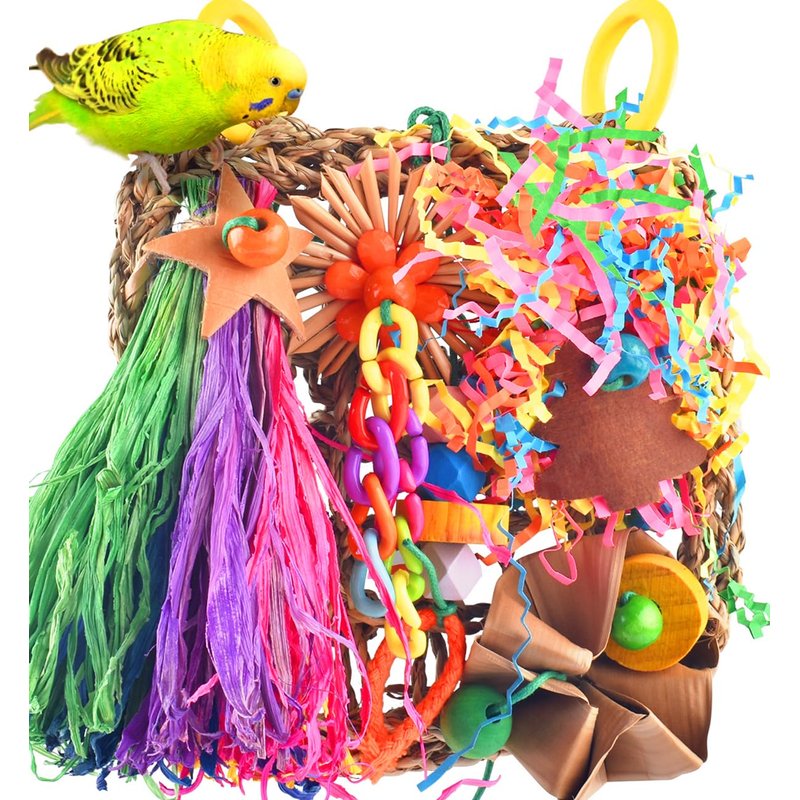 - SAFE BIRD TOYS: KATUMO bird climbing mat is made of natural seagrass, decorated with colorful chew toys, which are made from natural wood, bamboo, corn husk, wood chip, shredded papers and non-toxic acrylic, dyed with edible pigments, safe for birds to chew and peck
