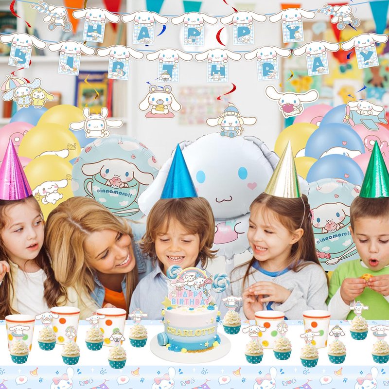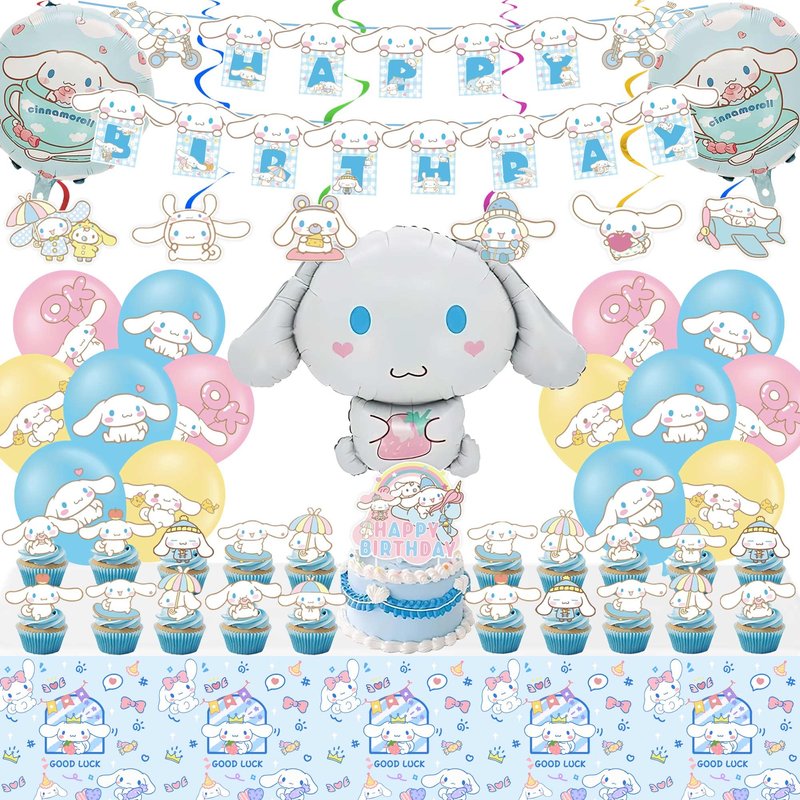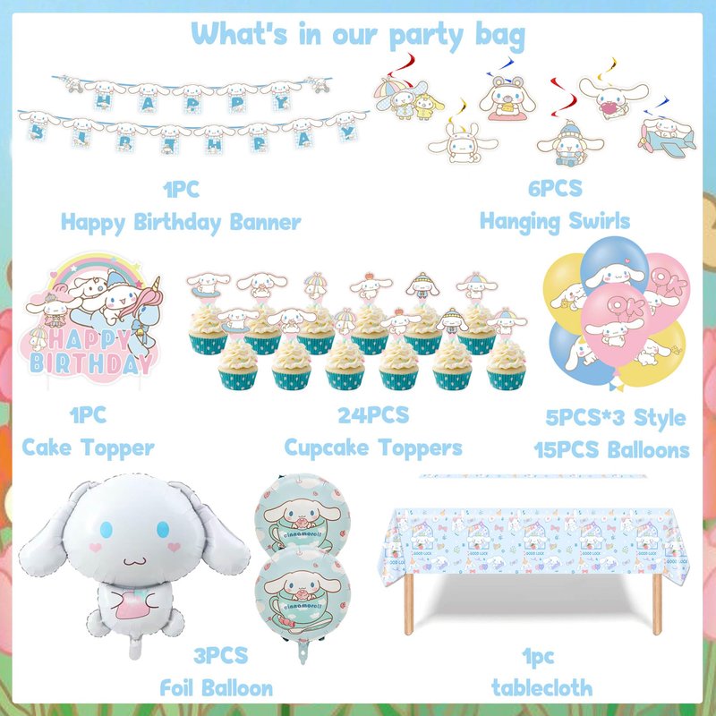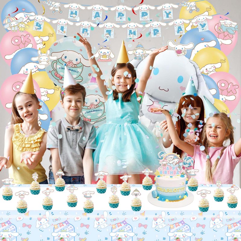 Kawaii Birthday Party Decorations, Cute Dog Party Supplies Include Banner, latex Balloons, Hanging Swirls, Foil Balloon, Cake Cupcake Toppers, Tablecloth for Kids Kawaii Theme Party