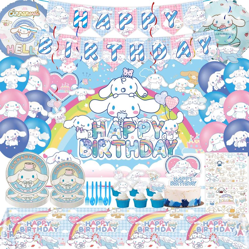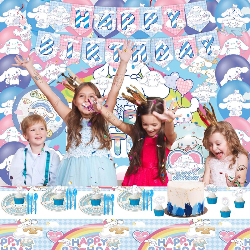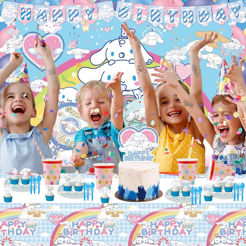 Kawaii Birthday Party Decorations Include Banner, Balloon, Tablecloth, Plates, Tattoo Sticker, Backdrop for Kawaii Birthday Party Supplies