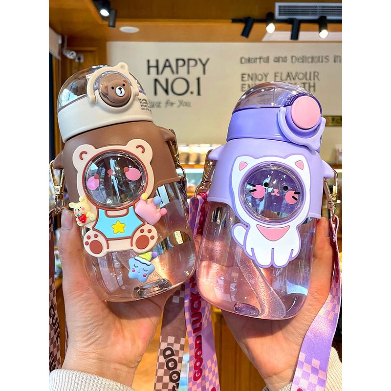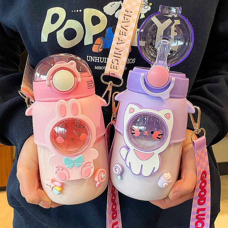 - ❤【Leakproof Design】- The kawaii water bottle mouth with straw adopts a seal design to keep the straw clean. The bottle can be cross-carried on your back, and also can be put into bags to enjoy traveling and outdoor sports.