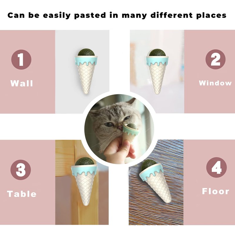 - đșăUNIQUE DESIGN Of CATNIP TOYă - The three cat's favorite ball is placed in the notch plate, each of which can be removed but used alone. So you can give him everything and let him choose his favorite flavor, or the flavor you want him to taste. With extra strong double-sided tape, it is easy to stick firmly to walls or other smooth surfaces. The kitten will not fall when playing, chewing or licking