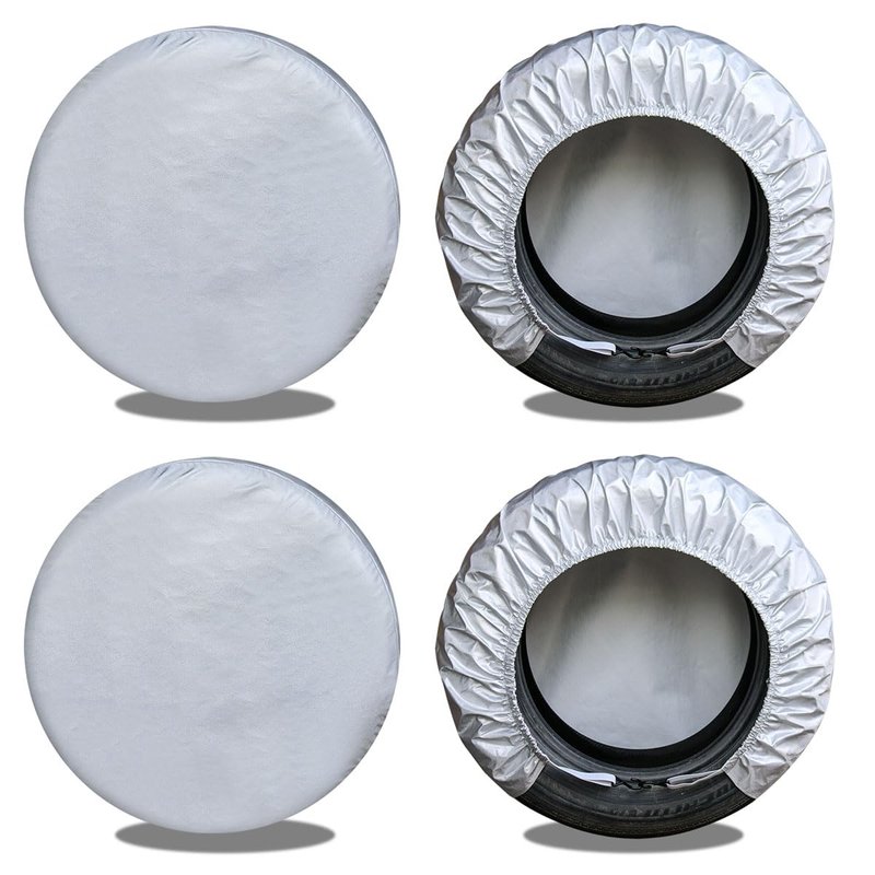 Kayme Rv Tire Covers Set of 4, Travel Trailer Camper Truck SUV Motorhome Waterproof Wheel Cover, Sun Rain Snow Protector, Fit 27-29 Inch Tire Diameter/Silver