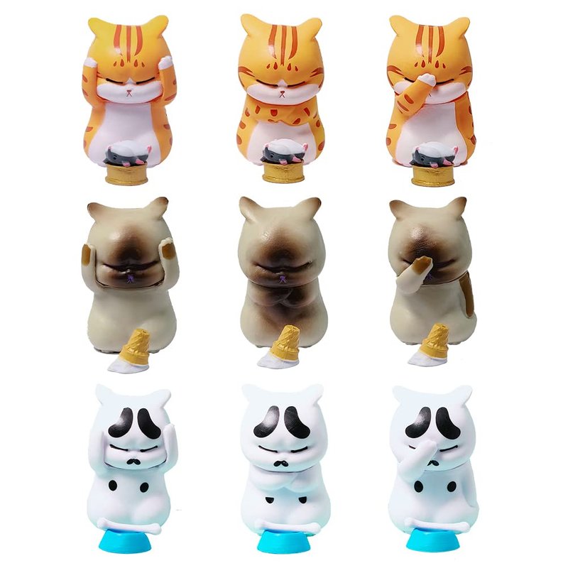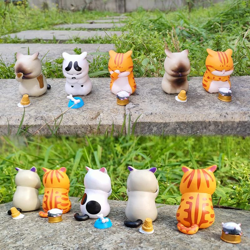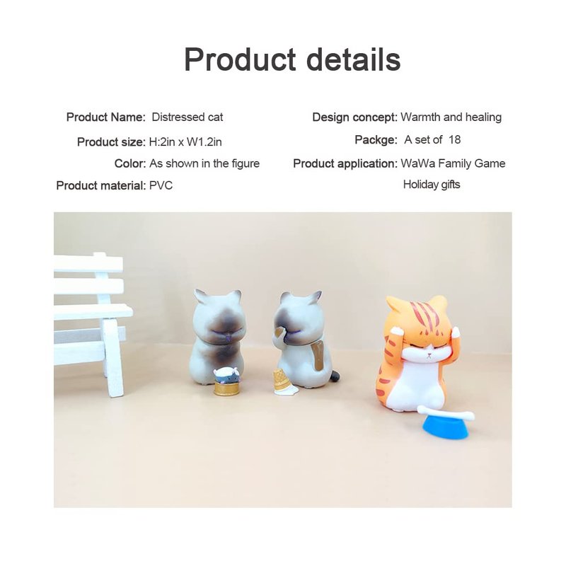 - CATS FIGURINE MINIATURE SET- Includes 9 Distressed Cats, seems it's just failed,suffering and feeling hopeless.So cute! Each figure about 1.6 inch and 0.6oz.It's a amazing gift for a cat lover. Also good as a decoration.